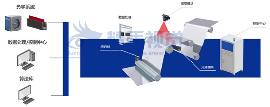 利用高亮LED光源將材料表面打亮,通過編碼器觸發高速相機實時采集圖片,再由圖像處理系統對圖片進行分析,提取疵點,最后由智能分類器對疵點進行精細化分類,記錄查詢和分析系統提供歷史記錄查詢和各種維度的數據分析和展示。fb8機器視覺檢測設備_CCD視覺檢測_外觀缺陷檢測系統_精質視覺